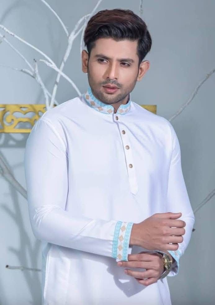 Crafted from premium Micro Eastes fabric, this Panjabi offers a smooth texture, lightweight comfort, and a refined finish.